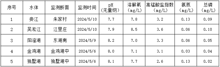 2024年5月蘇州工業(yè)園區(qū)地表水監(jiān)測(cè)結(jié)果