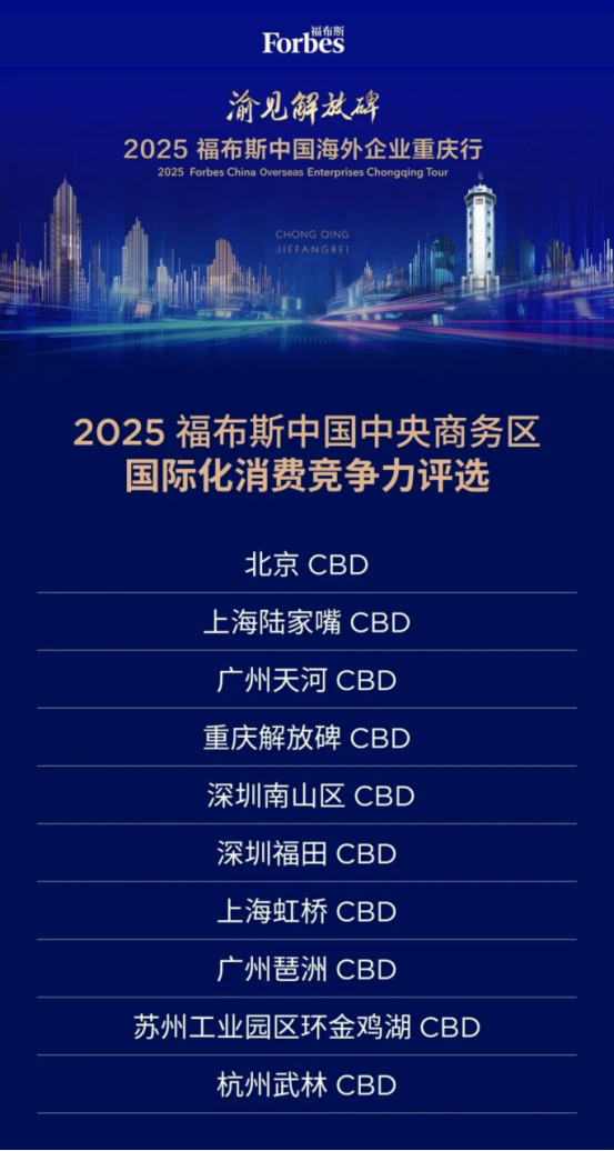 近日渝見解放碑·2025福布斯中國海外企業(yè)重慶行成功舉行活動(dòng)期間,2025福布斯中國中央商務(wù)區(qū)國際化消費(fèi)競(jìng)爭力評(píng)選結(jié)果正式發(fā)布蘇州工業(yè)園區(qū)環(huán)金雞湖CBD榜上有名