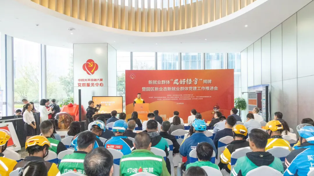 2024年底,大廈開放了小哥“暖新”食堂、星騎士快遞小哥驛站等服務配套,為周邊有需求的人員、“兩新”群體提供暖心支持,并榮獲蘇州市首個服務新就業群體“友好樓宇”榮譽稱號。