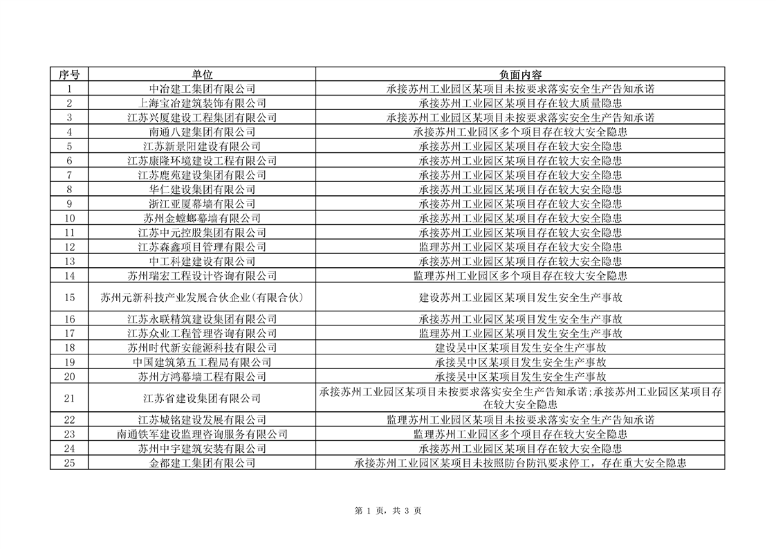 蘇州工業園區建筑施工安全生產告知承諾負面清單