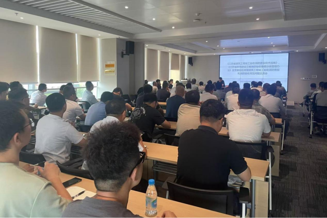 會議強調了建筑工程消防質量事關建筑使用安全和社會公共安全,責任重大。要求各在建項目要深刻認識消防查驗工作的重要性,強化消防工程施工質量的把控,切實提升建筑工程消防質量水平。會議對近期開始實施的《江蘇省建筑工程竣工驗收消防查驗技術指南》《江蘇省其他建設工程消防驗收備案分類管理辦法》進行了宣貫,對過程質量監督和消防驗收中發現的常見問題進行了解剖分析,系統性講解了消防驗收中各專業方面驗收要點。與會者收獲頗豐。