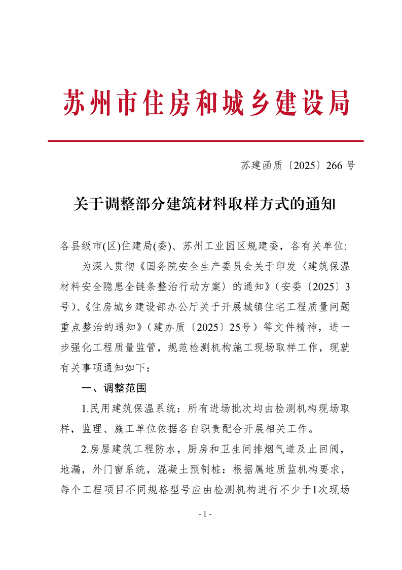 關于調整部分建筑材料取樣方式的通知