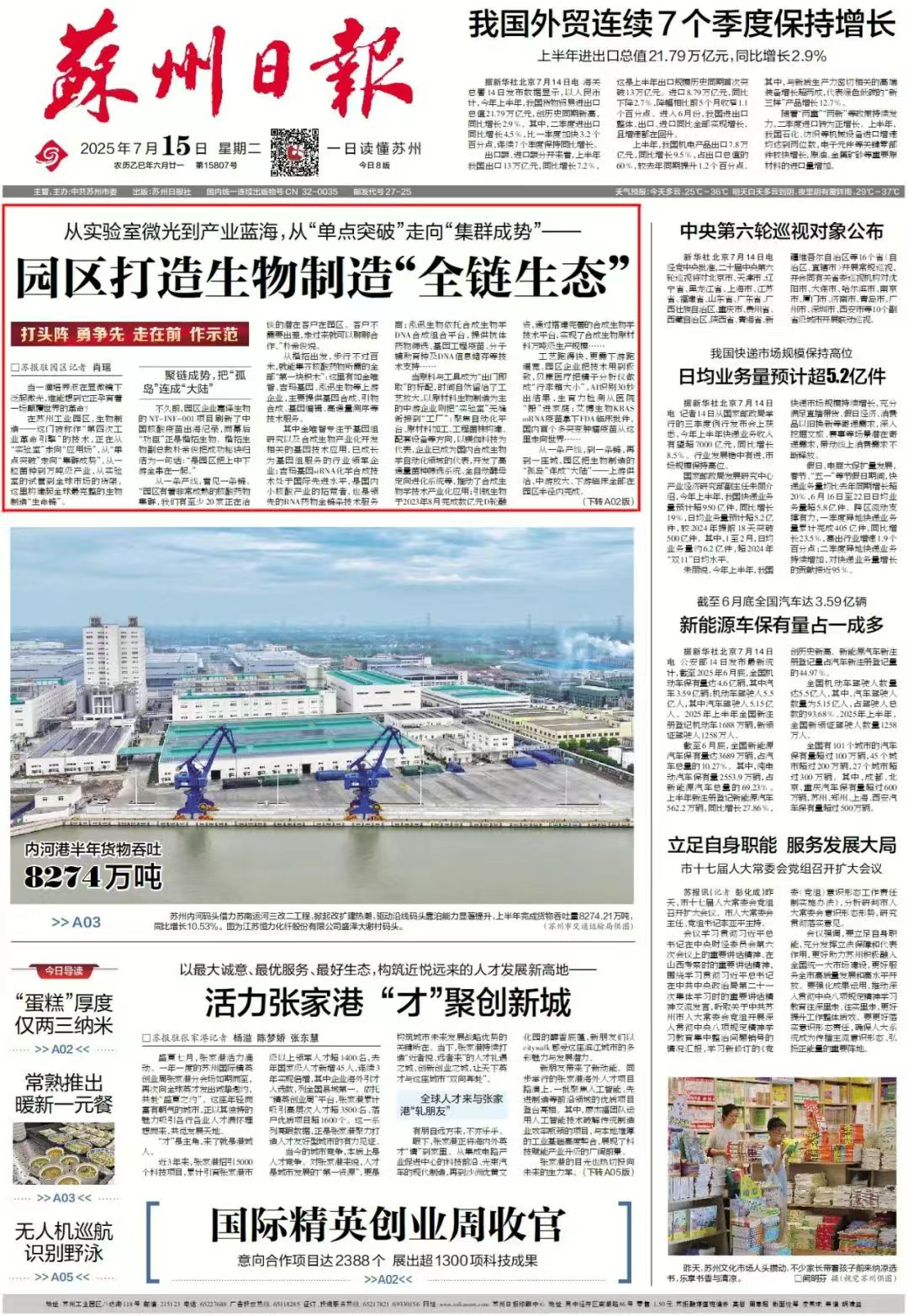 《蘇州日報》頭版關(guān)注蘇州工業(yè)園區(qū)