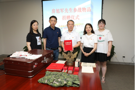 7月27日下午,園區檔案管理中心舉辦房旭軍先生參戰物品捐贈儀式。園區檔案管理中心綜合處工作人員、園區楓情水岸社區黨支部領導參加儀式。