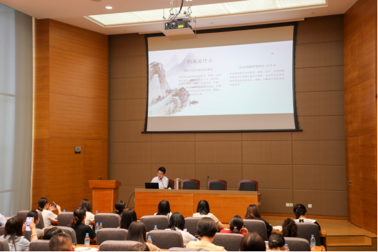 培訓中,檔案管理中心還向參訓人員發放了中心最新編纂的《檔案工作文件匯編》,并對檔案職稱評審、檔案學會工作等做了簡要介紹。