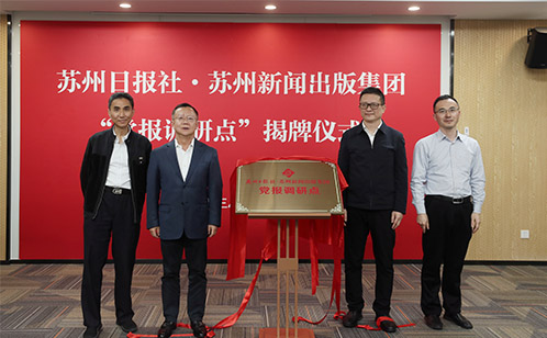 蘇州日報社黨委書記、社長,蘇州新聞出版集團有限公司董事長李勇,蘇州工業(yè)園區(qū)黨工委委員、管委會副主任、宣傳和統(tǒng)戰(zhàn)部部長朱江,蘇州工業(yè)園區(qū)宣傳和統(tǒng)戰(zhàn)部副部長、文體旅游局局長殷衛(wèi)東,蘇州獨墅湖科教創(chuàng)新區(qū)黨工委書記許文清,蘇州日報社黨委委員、副總編輯高巖,蘇州工業(yè)園區(qū)宣傳和統(tǒng)戰(zhàn)部副部長張蓁,蘇州工業(yè)園區(qū)斜塘街道黨工委副書記、辦事處主任楊淑瑾出席揭牌儀式。活動邀請了蘇州市政府研究室科研處處長成濤林,國家智庫·南京大學長江產(chǎn)業(yè)經(jīng)濟研究院特聘研究員,蘇州科技大學教授徐天舒參與調(diào)研。