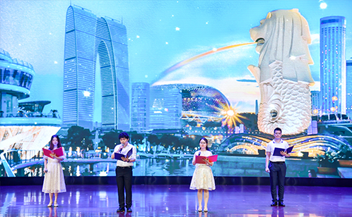 第二篇章“華麗蛻變 共謀發(fā)展新篇”,回顧園區(qū)發(fā)展波瀾壯闊三十年,以原創(chuàng)詩(shī)、雙語(yǔ)詩(shī)等形式展現(xiàn)園區(qū)日新月異的成就;其中《靜穆的躍升》一詩(shī)由新加坡作者原創(chuàng),由中國(guó)科學(xué)技術(shù)大學(xué)蘇州高等研究院和新加坡國(guó)立大學(xué)蘇州研究院兩校師生共同演繹,在語(yǔ)言的交織中傳遞著中新合作的力量。