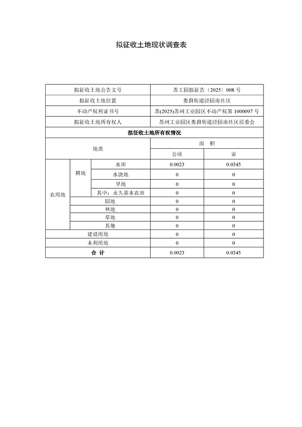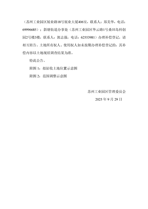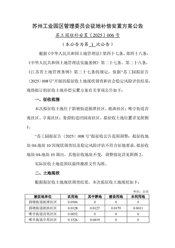 蘇州工業園區管理委員會征地補償安置方案公告(蘇工園征補安置〔2025〕006號)