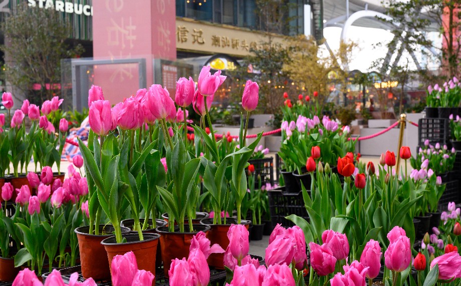活動現(xiàn)場,嫩白的“凌波仙子”、鵝黃的重瓣水仙、甜美的山茶、典雅的蝴蝶蘭,以及獨具姿態(tài)的各色郁金香等,匯聚天幕東街和西街的中心廣場,構(gòu)成一組組花團錦簇的特色景觀,引得市民游客紛紛駐足。