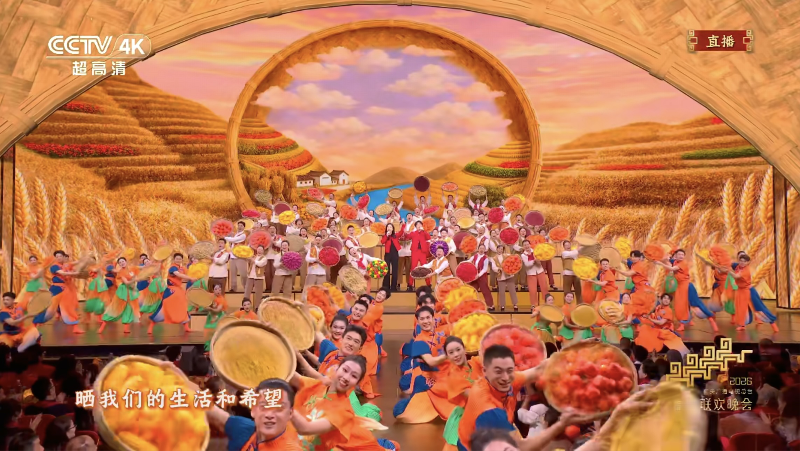 在北京主會場《來曬秋》節目中,農民合唱團帶著豐收的喜悅登上春晚舞臺,沉甸甸的笸籮、金黃的稻穗、火紅的辣椒繪就秋收好“豐”景,質樸歌聲與濃濃年味打動人心。晚會以真摯情懷歌頌時代發展、唱響人民幸福生活,背后是導演組在節目編排、舞臺呈現、技術融合上的精益求精,全力打造一臺貼近生活、溫暖人心的“人民的春晚”。