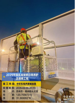 2月9日中午,園區(qū)市政服務集團工作人員在常態(tài)化設施巡查中,發(fā)現(xiàn)中環(huán)東線高架陽澄湖大道南向北段局部聲屏障存在松動隱患,集團當即啟動應急處置程序。從現(xiàn)場核查、精準定位問題、敲定整改方案,到申請夜間占道作業(yè)、深夜落地現(xiàn)場搶修,再到舉一反三開展拉網(wǎng)式排查、對全線設施完成復緊加固,這場由點及面的市政設施維護“加速跑”,全程用時36.5小時。