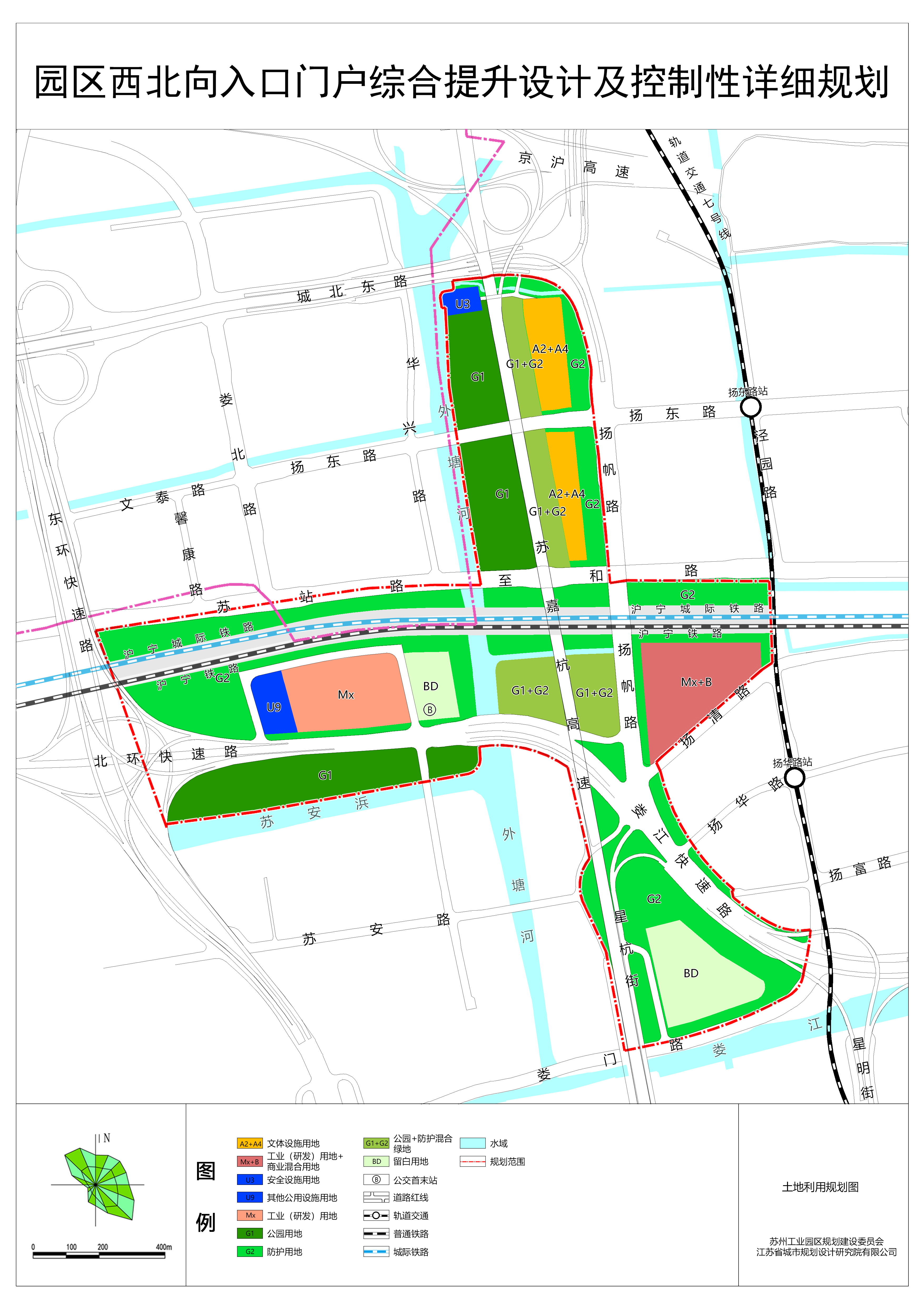 本項目位于園區、姑蘇區、相城區三區交界,重點研究滬寧城際鐵路、蘇嘉杭高速及揚帆路兩側地塊,規劃面積約1.08km2