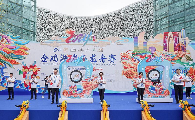 6月10日午前、2024金鶏湖端午ドラゴンボートレースが蘇州工業(yè)園區(qū)の月光埠頭でスタートした。66チームが金鶏湖で波を追い合って競爭し、先を爭う、誠意をもって一致団結するドラゴンボートの精神を十分に展示し、スポーツ、文化、観光とビジネスが融合発展するドラゴンボートの饗宴を作り出した。
