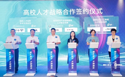 會議では、園區組織部、園區経済発展委員會、城市重建、南京航空航天大學民航學院、武漢大學蘇州研究院、西安交通リバプール大學が共に大學人材に関する戦略的協力協定に調印し、園區の低空経済人材育成のためにより広いプラットフォームを構築し、中國初の低空経済「研究?生産?教育融合」サービス共有基地を創るための人材基礎を築く。
