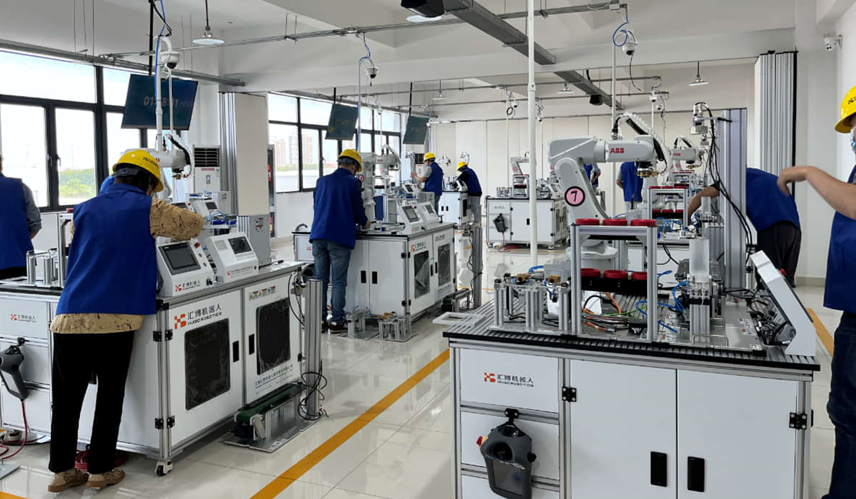 匯博ロボットグループは教育アップグレードを継続的に支援しており、390萬(wàn)元の資金を投入し、203.16萬(wàn)元相當(dāng)の産業(yè)用ロボット実習(xí)設(shè)備を寄贈(zèng)し、蘇州百年職業(yè)學(xué)院と「工業(yè)インターネット産業(yè)學(xué)院」を共同建設(shè)し、実習(xí)生産基地を精心に整備した。