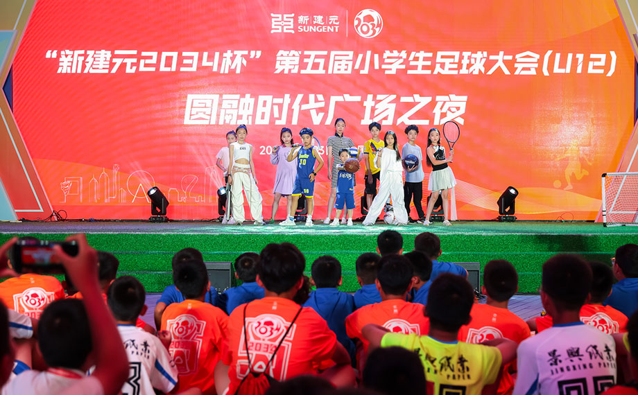 7月23日、「新建元2034カップ」第5回全國小學(xué)生サッカー大會(U12)全國決勝戦に參加中の千人以上のサッカー少年たちが、試合の合間を利用して新建元グループ旗下の圓融時代広場を訪れ、競技の激情と文化の魅力が融合した夏の夜の旅を楽しんだ。