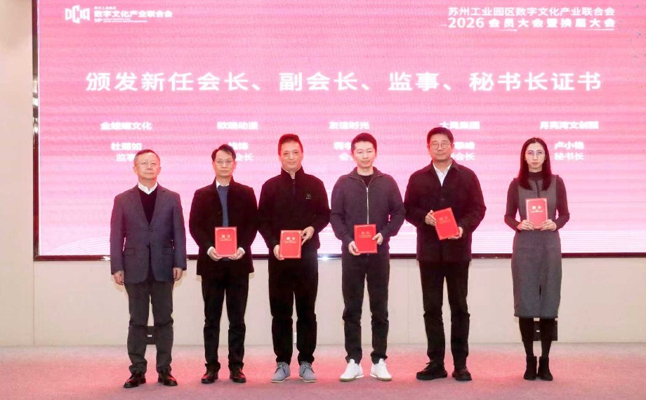 1月27日、園區デジタル文化産業連合會の2026年會員大會及び役員改選大會が人工知能産業園で開催された。過去の成果を振り返り、今後の発展を展望し、園區のデジタル文化産業の高品質な発展に新たな原動力を注入した。園區共産黨工作委員會委員、管理委員會副主任、宣伝部部長の朱江氏が大會に出席した。