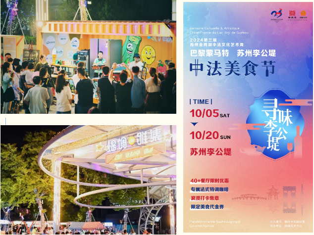 中法文化周期間,李公堤文創(chuàng)街區(qū)繼續(xù)開設(shè)“中法風(fēng)情美學(xué)市集”,匯集美食、藝術(shù)、潮流元素,展示中法文創(chuàng)內(nèi)容。同時,李公堤聯(lián)袂黑珍珠餐廳、精選特色餐廳等近40家商戶開展了“中法美食節(jié)”,呈現(xiàn)不同主題的中西式美食盛宴,營造不同風(fēng)格的美食文化氛圍。