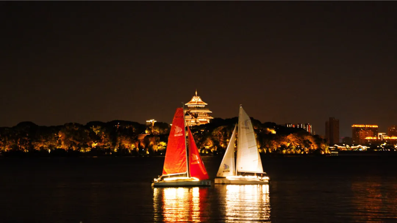 帆船夜航巡演結(jié)合帆船風(fēng)格和視覺享受,在右岸水域精心規(guī)劃夜航巡演線路,在夜幕降臨時,燈光裝點的船只成為水面上的一道亮麗風(fēng)景,和周圍環(huán)境的美景相互映襯。