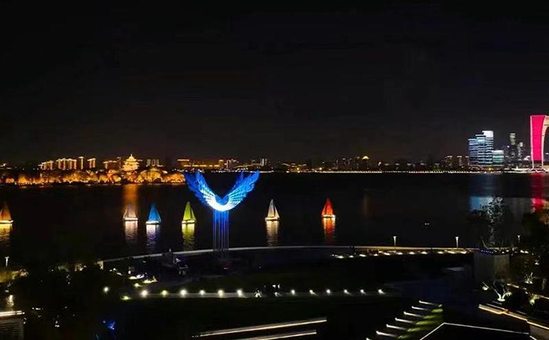 值得一提的是,為提升金雞湖夜景觀賞性,國慶長假和2024體育“兩博會”期間,蘇州八旗帆船俱樂部在金雞湖右岸水域連續(xù)推出帆船夜航巡演,結(jié)合帆船風格和視覺效果,精心規(guī)劃夜航線路,打造夜色金雞湖新亮點。