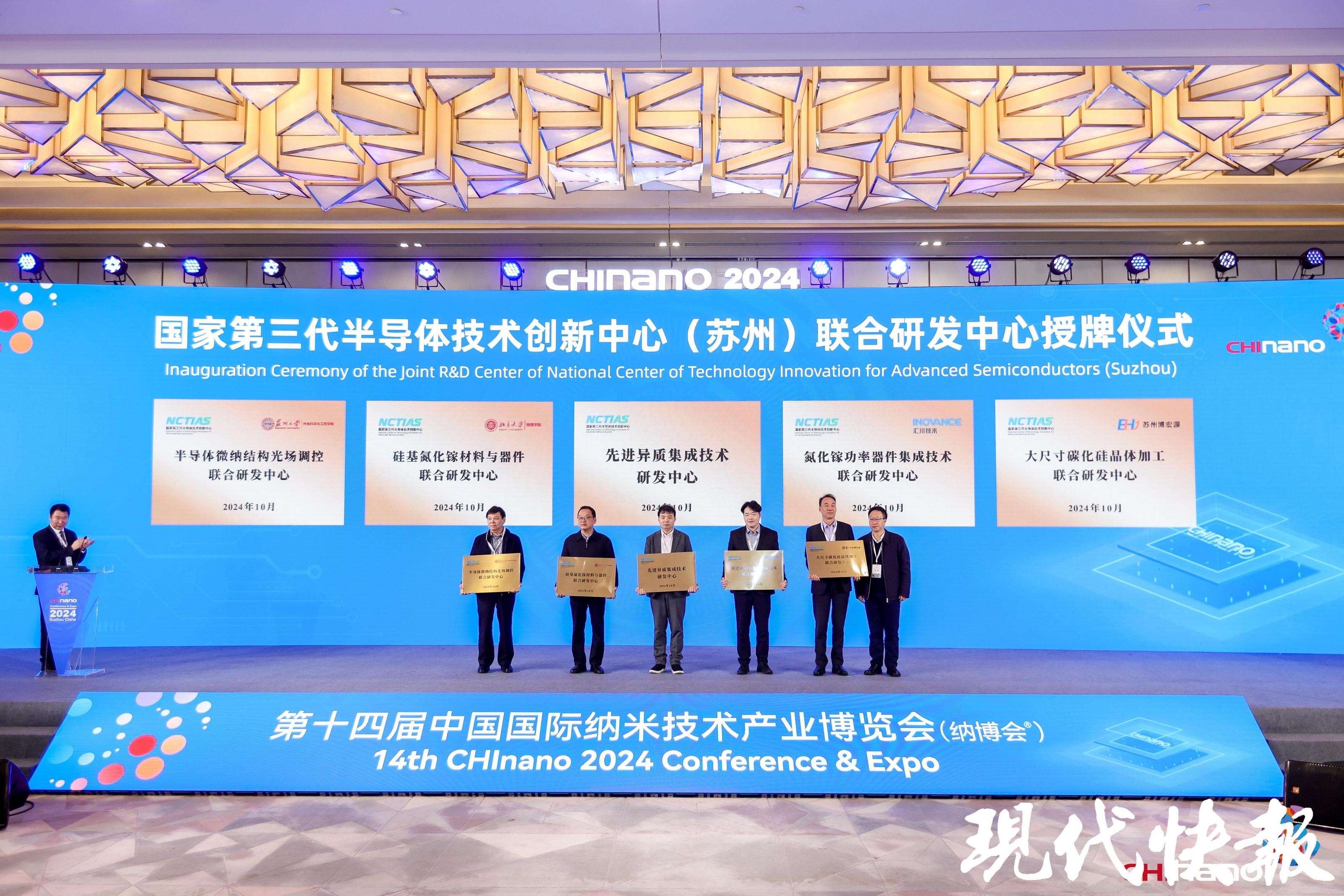 國(guó)家第三代半導(dǎo)體技術(shù)創(chuàng)新中心(蘇州)自2021年3月落地園區(qū)以來(lái),聚焦“1~100”產(chǎn)業(yè)共性關(guān)鍵技術(shù),已承擔(dān)省級(jí)以上重大研發(fā)項(xiàng)目超20余項(xiàng),共建近40家聯(lián)合研發(fā)中心。開(kāi)幕式現(xiàn)場(chǎng)發(fā)布第三代半導(dǎo)體十大科學(xué)技術(shù)問(wèn)題和3項(xiàng)最新關(guān)鍵突破性成果,并對(duì)5至7家聯(lián)合研發(fā)共建單位進(jìn)行授牌,進(jìn)一步推進(jìn)國(guó)創(chuàng)中心(蘇州)與行業(yè)內(nèi)優(yōu)勢(shì)單位構(gòu)建深度長(zhǎng)效產(chǎn)學(xué)研合作,加快關(guān)鍵核心技術(shù)創(chuàng)新和科技成果轉(zhuǎn)化。