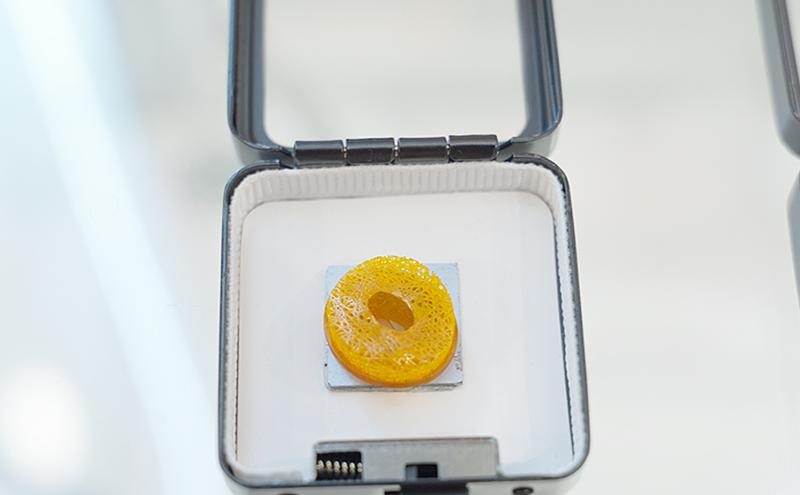 展臺中,一塊小小的陶瓷超材料模型玲瓏剔透,而其內部則是肉眼無法觀察的蜂窩狀結構。“在微納應用下,我們可以模擬展現一些新材料的結構特性,從而助力新材料的研發。目前,公司與多家客戶達成了合作,可以輔助實現一些全新課題的研發。譬如這款陶瓷超材料的結構打印,就為不同結構的新材料研發提供了新的可能性。”周禮俊說。