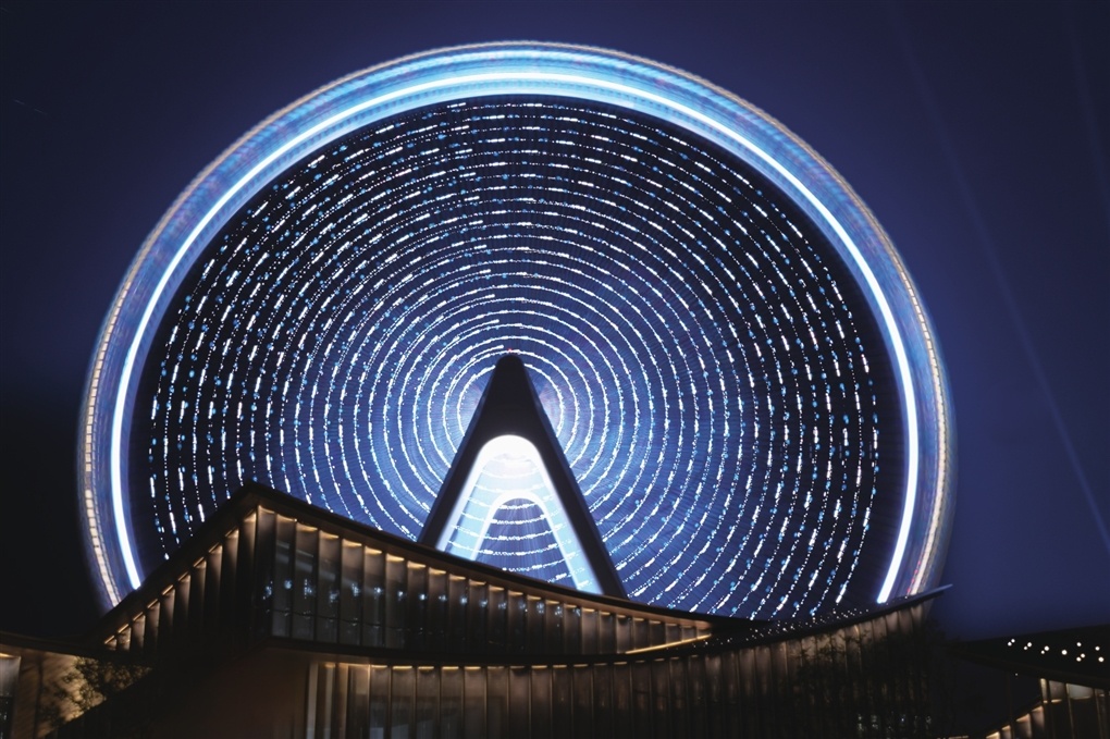 昨日,用相機慢門記錄下的園區“蘇州之眼”摩天輪格外迷人。(視覺蘇州供圖)