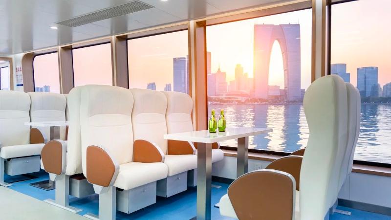 追求文藝范的游客,可搭乘中央河摩登時光漫游航線,開啟一段水岸疊影?CBD徜徉之旅。該船采用太陽能環(huán)保親水新能源微游艇,從中央河碼頭出發(fā),途經(jīng)國金中心、圓融天幕等地標(biāo),白天可覽城市活力,夜晚能賞燈光璀璨,一條航線串聯(lián)起Young蘇州的現(xiàn)代繁華圖景,還可包船自駕。