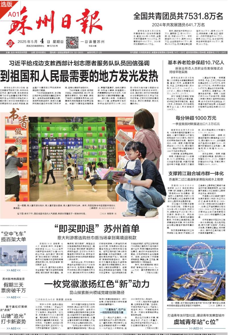五一假期,有人喜歡游山玩水,有人喜歡音樂美食,有人喜歡與書為伴。昨天,市民在新華書店觀前書城內(nèi)認真閱讀。 闕明芬攝(視覺蘇州供圖)