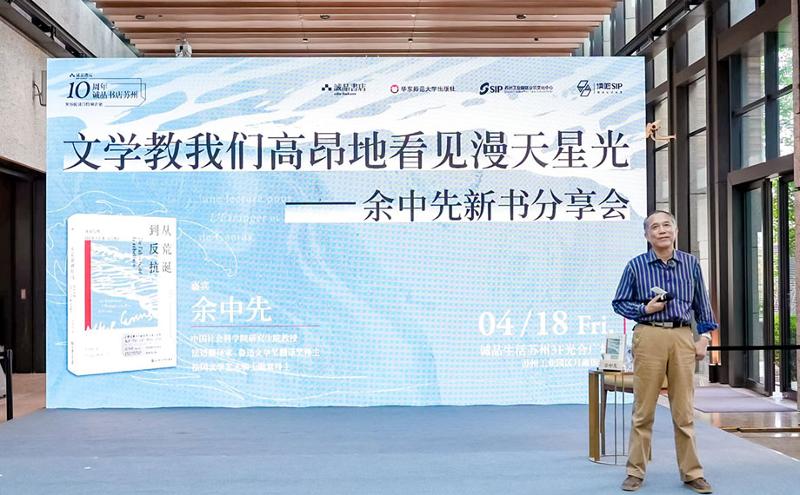當(dāng)天,《世界文學(xué)》前主編、中國(guó)社會(huì)科學(xué)院研究生院教授、魯迅文學(xué)翻譯獎(jiǎng)得主余中先帶著新作來到現(xiàn)場(chǎng),與書友共話文學(xué)里的漫天星光,開啟新書首發(fā)式閱讀盛宴。現(xiàn)場(chǎng),“流動(dòng)的文化盒子”、Drawing SIP等公共文化品牌,為市民帶來跨界融合、多元互動(dòng)的文化探索與創(chuàng)意體驗(yàn),“金雞湖Share書”、閱游園區(qū)福利放送、立體書塔、淘書鋪?zhàn)印⑺嚒皶惫矂?chuàng)等兼具趣味性與互動(dòng)性的板塊,則讓市民更加直觀地領(lǐng)略了創(chuàng)新閱讀、立體閱讀的魅力。