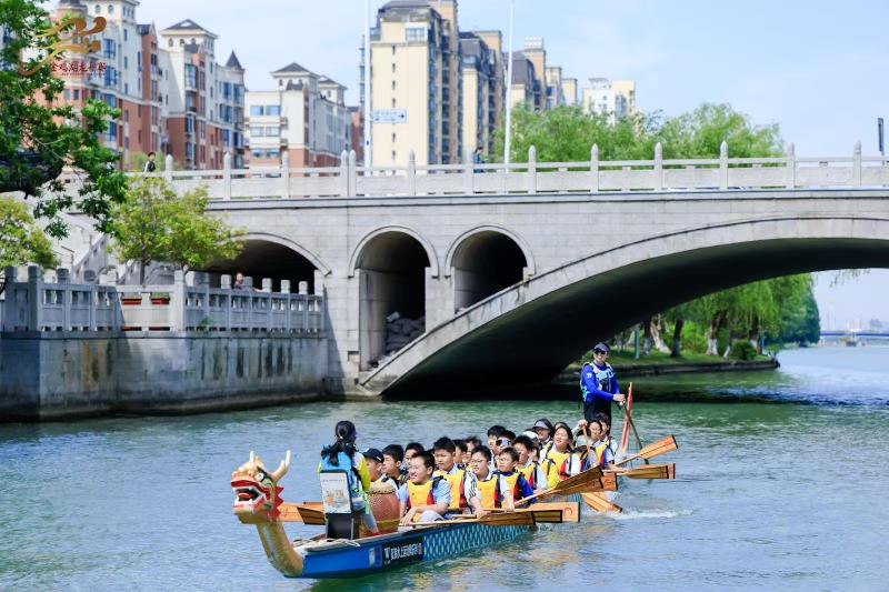 當暮色籠罩斜塘河,粼粼波光之上,船槳劃開水面的聲音與激昂鼓點交織,奏響一曲獨特的奮進之歌。蘇州國際友緣龍舟隊(Suzhou International Friendship Dragon Boat Team)的隊員們正在進行緊張的賽前訓練,不同膚色的手臂,整齊有力地揮動船槳,龍舟如離弦之箭劃開碧波。這支由法國、南非、印度尼西亞等多國留學生組成的特殊隊伍,正以龍舟為紐帶,在園區這片開放創新的熱土上,演繹著跨越國界的文化對話。蘇州國際友緣龍舟隊成立于2021年,已多次亮相金雞湖端午龍舟賽...