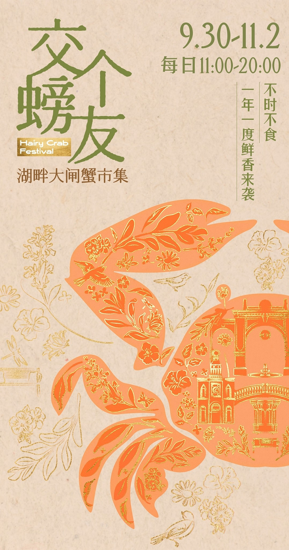 秋風(fēng)起,福利到,滿(mǎn)澄盡啖黃金甲。在蘇州工業(yè)園區(qū)金秋·三湖嘉年華火熱開(kāi)啟之際,9月30日—11月2日每日11:00—20:00,比斯特蘇州購(gòu)物村“交個(gè)螃友”湖畔大閘蟹市集再次回歸,約上好友一起來(lái)品嘗金秋鮮味吧!