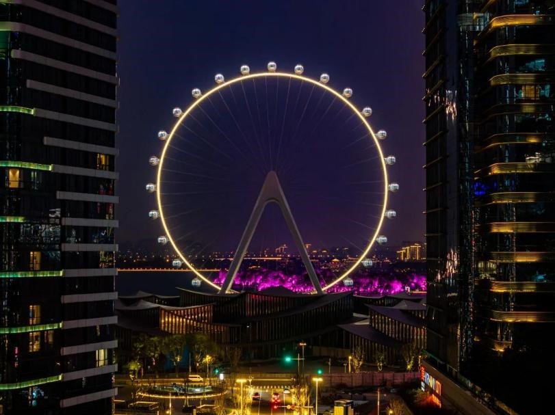 傍晚時分,金雞湖迎來一天中最美的時刻。“蘇州之眼”摩天輪的黃昏場格外浪漫,夕陽為太空艙鍍上金邊,湖面倒映著橙紅色霞光。不遠處的蘇州文化藝術中心、688藝術潮流空間匯聚了各類藝術展覽與潮流活動,在這里能深刻感受園區(qū)的藝術脈搏。當夜幕降臨,月光碼頭燈火璀璨,湖邊酒吧傳來輕柔音樂,是漫步賞景的理想去處。環(huán)金雞湖周邊不同風格的酒店則提供了多元住宿選擇,既能享受便捷交通,更能近距離領略金雞湖的迷人夜色。