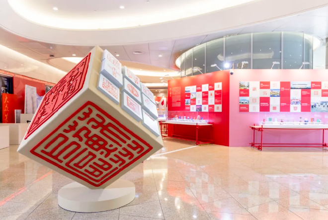 直播鏡頭跟隨導(dǎo)覽人的腳步,深入解讀了展覽的兩大構(gòu)成部分。第一部分“印記園區(qū)”以94枚全新創(chuàng)作的印章,構(gòu)建出“領(lǐng)航壁畫(huà)”“志合山海”“吳風(fēng)湖韻”“勇立潮頭”“盛世江南”五大篇章。這些作品不僅凝結(jié)了園區(qū)篆刻愛(ài)好者與專(zhuān)業(yè)工作者的創(chuàng)意巧思,更特別聚焦于園區(qū)的經(jīng)濟(jì)發(fā)展、科技創(chuàng)新、自然景觀與產(chǎn)城融合圖景進(jìn)行創(chuàng)作,讓古老的篆刻藝術(shù)與園區(qū)的現(xiàn)代化發(fā)展深度交融。