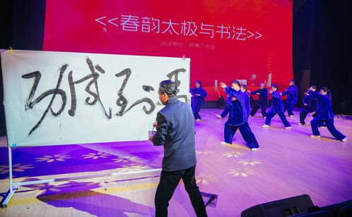 整場演出圍繞“錦繡河山·盛世歡歌”“雅韻流芳·吳儂傳情”“華彩律動·時代風采”“初心綻放·幸福回響”四大主題徐徐展開從《五星紅旗》的舞動盛世到《次真拉姆》的江南風韻,從《祖國的好江南》的歌聲禮贊到滬劇評彈的吳儂婉轉,舞臺流轉間盡展斜塘文脈的深厚底蘊。隨后,《快樂秀》走出時代風采,《春韻太極與書法》剛柔相濟,《懷鄉曲》寄托家國深情,最后《我愛你中國》將情感推向高潮,鋪展出一幅傳統與現代交融的文化長卷。