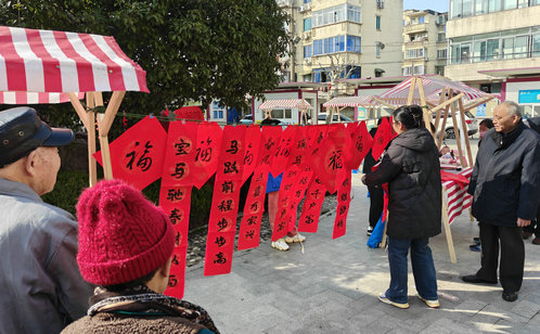 其中最動人的風景,莫過于筆墨丹青帶來的紅火與祝福。葑誼社區的書法愛好者們揮毫潑墨,一幅幅筆力遒勁的春聯、一張張滿載祝愿的“?!弊郑?span style="font-family: 宋體; font-size: 12pt;">免費送到居民手中,傳遞著樸素而真摯的鄰里情誼。官瀆社區則由社區書畫社的志愿者現場根據居民喜好“定制”春聯,無論是經典佳句還是貼近生活的暖心話語,都在墨香中化為一份份獨一無二的祝福。而在蘇安南社區,書寫更添一份溫馨——“親子寫福”區域里,孩子們在家長的陪伴與指導下,認真寫下或許稚嫩卻充滿心意的一筆一劃,簡單的互動中傳遞著家人間的親情。