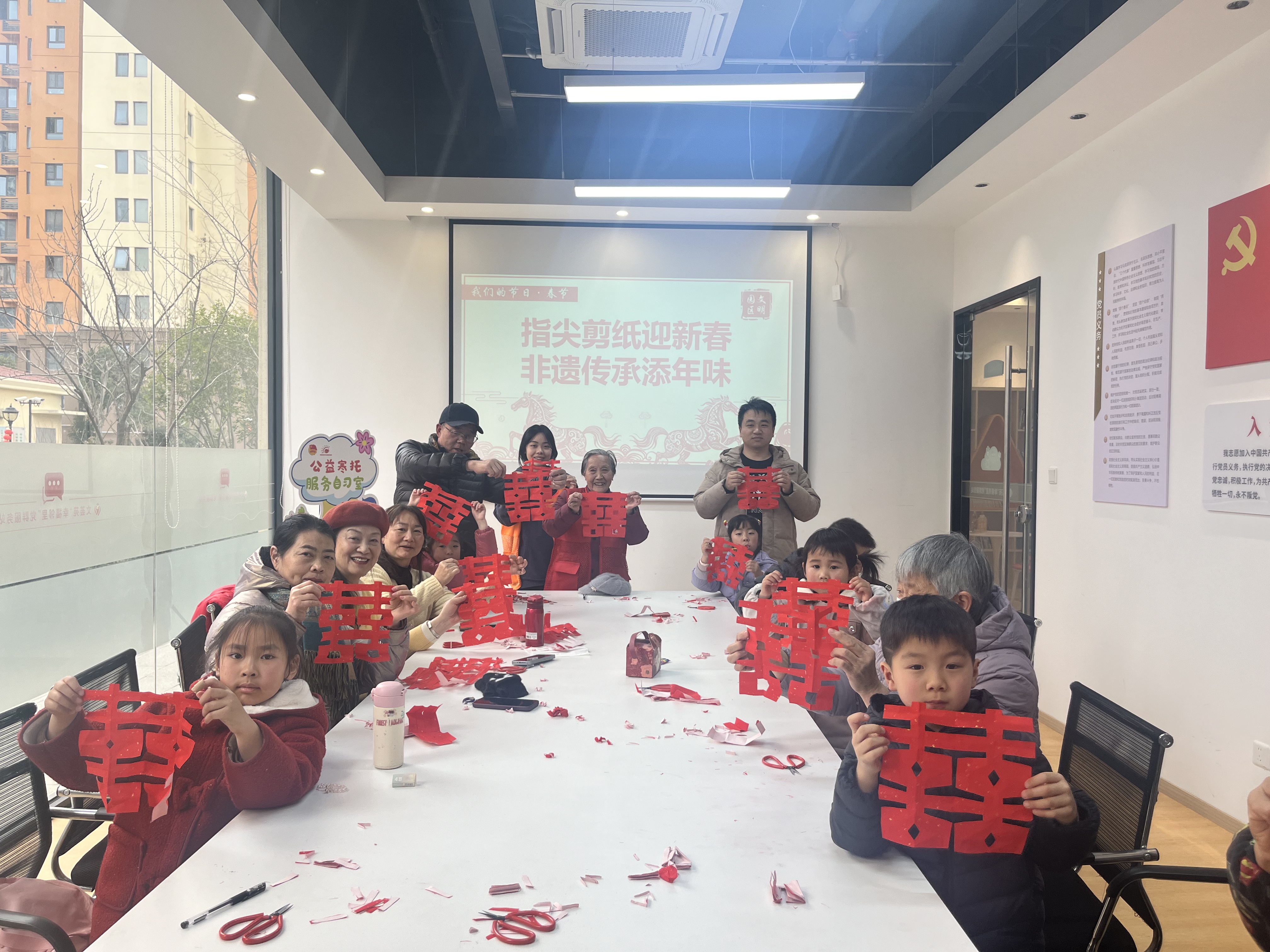 為傳承中華優秀傳統文化,近日,文薈苑社區舉辦“指尖剪紙迎新春,非遺傳承添年味”春節主題活動,讓居民在指尖巧藝中感受非遺魅力。活動現場暖意融融、喜氣洋洋,大紅宣紙整齊鋪展,剪刀、毛筆等工具一應俱全,處處洋溢著“紅韻滿堂,福意盎然”的節日氛圍。參加活動的居民們圍坐一堂,在剪紙老師的指導下,手持紅紙凝神創作。剪刀開合間,一張張普通的紅紙化作寓意吉祥的窗花、栩栩如生的生肖馬、喜慶團圓的囍字圖案,大家相互交流技巧、展示成果,歡聲笑語不斷,沉浸式體驗非遺剪紙的獨特魅力。