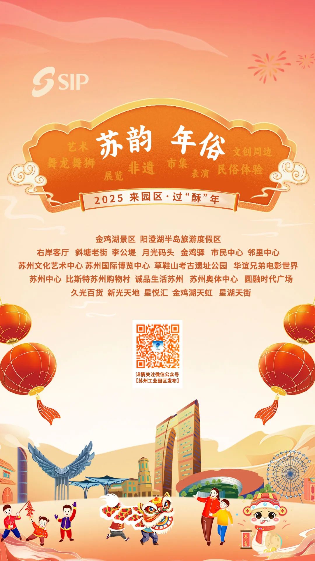 來(lái)園區(qū),過(guò)“酥”年!2025年將迎來(lái)首個(gè)“非遺版”春節(jié),蘇州工業(yè)園區(qū)聚焦“商、旅、文”推出“來(lái)園區(qū)·過(guò)‘酥’年”系列活動(dòng),圍繞四大主題,“嗨購(gòu)樂享”“惠游暢玩”“蘇韻年俗”“悅宿歡娛”,開展精彩紛呈的特色活動(dòng),營(yíng)造濃厚熱烈的節(jié)日氛圍,助力游客市民惠游園區(qū),全方位展示園區(qū)蘇韻年味,進(jìn)一步推動(dòng)文旅消費(fèi)市場(chǎng)蓬勃發(fā)展。第三期“蘇韻年俗”攻略趕快收藏吧!