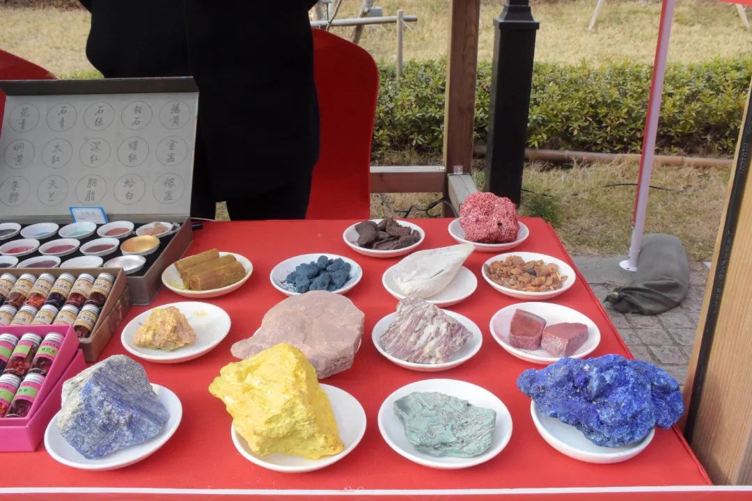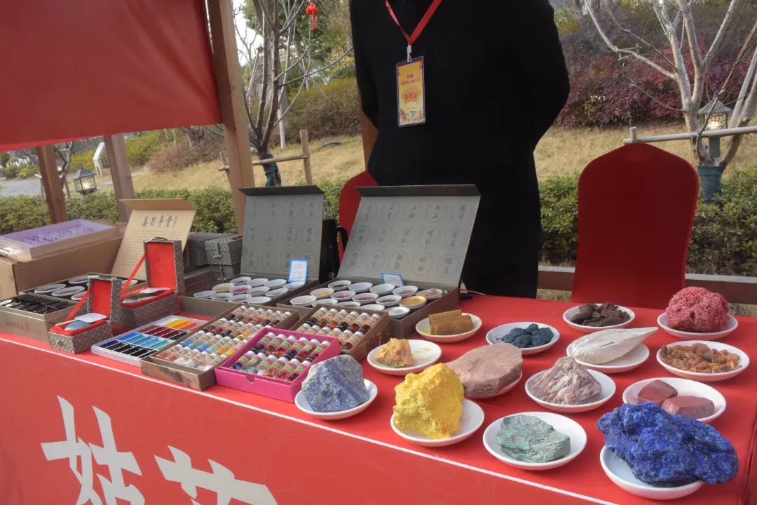 此次大會,張佰林不僅帶來了各色原材料,還帶來了多款針對不同用戶需求的12色國畫顏料,以及印泥、礦石標本等品類的相關產品?,F場,他還積極與大家分享國畫顏料制作的工藝流程和產品特色,并邀請有興趣的市民游客去工廠體驗。