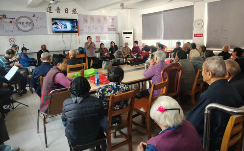 在蓮香社區的日間照料中心,經典劇目《梁祝》《牡丹亭》等輪番上演,雖然沒有精致的服裝和妝造,但民星精湛的表演和悠揚的唱腔還是贏得了居民們的陣陣掌聲。完全由社區居民自發成立的蓮聲戲曲社,在新的一年中隊伍更加壯大,目前固定社員已有12人,每個人在吹、拉、彈、唱上都有自己的專長。每周二下午的日照中心活動室里總是人頭攢動,社區的戲迷們更是早早地來到了活動室,就為了搶到靠前的位置。現在每周二,我雷打不動地過來聽戲,在家門口看大家的表演,真是過足了戲癮!”社區居民李奶奶興奮地說道。社區常態化開展豐富多彩的文化活動不僅讓居民感受到了文化的魅力,也進一步拉近了鄰里之間的距離,讓居民“家門口”的文化大餐觸手可及。