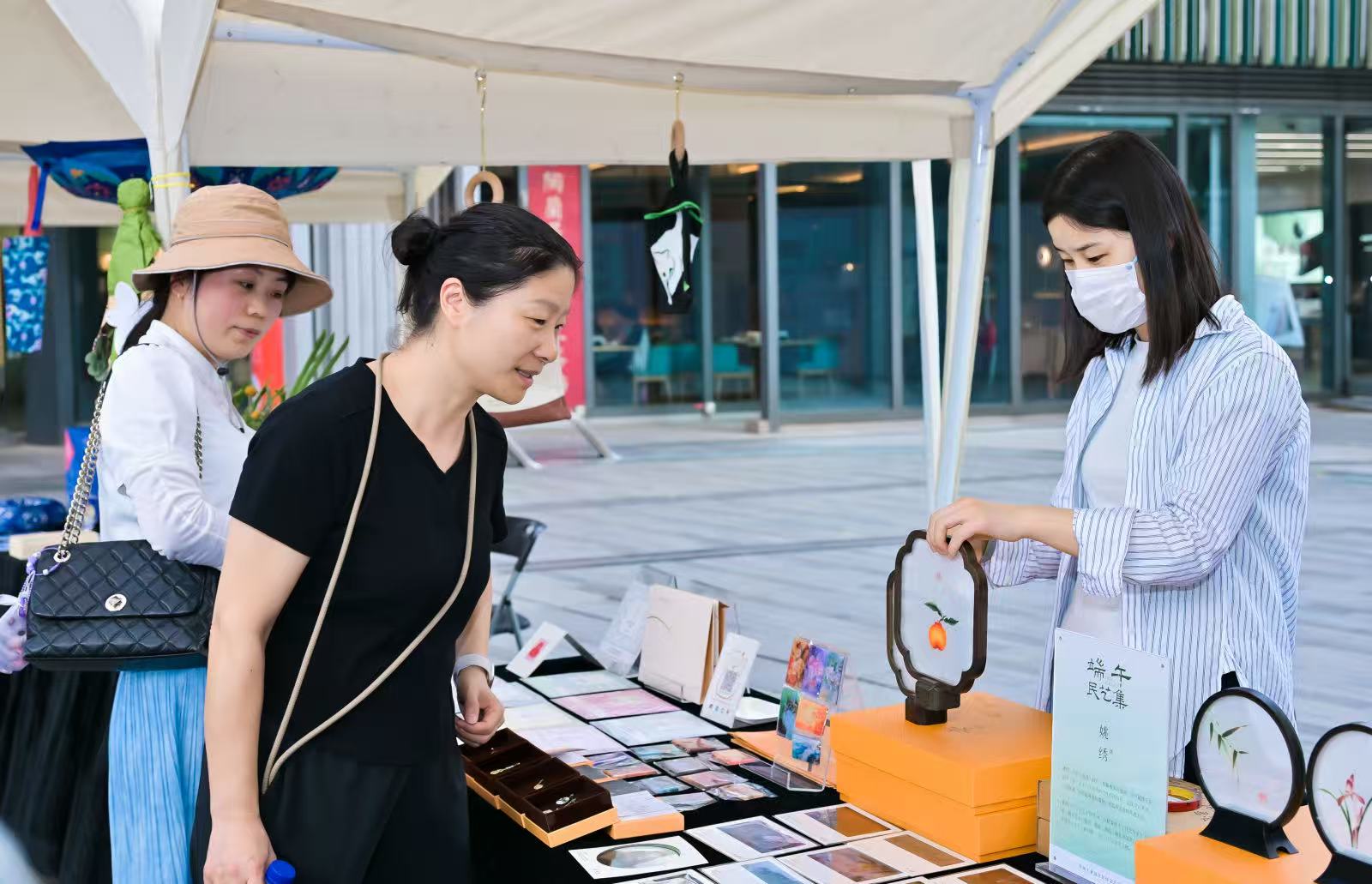 “端午民藝集”將傳統民俗文化與手工藝市集相結合,為市民帶來一場別開生面的文化體驗。市集匯聚了本地民間手工藝人,展示包括緙絲、刺繡、棕編、剪紙、吹糖人、漆扇等多項民間技藝。