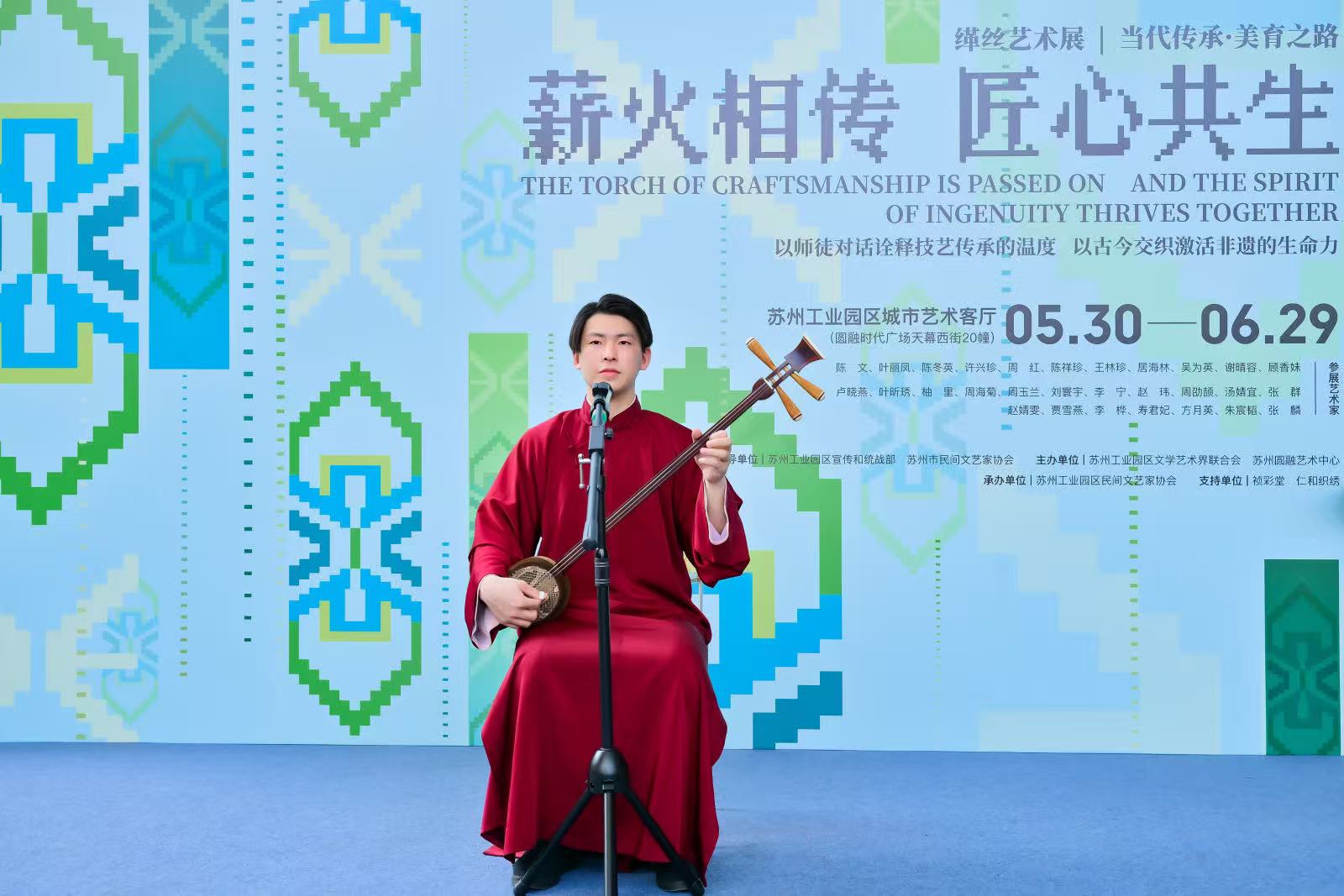 為弘揚中華優秀傳統文化,推動非物質文化遺產的保護與傳承,5月30日,由蘇州工業園區宣傳和統戰部、蘇州市民間文藝家協會指導,園區文學藝術界聯合會、蘇州圓融藝術中心主辦,園區民間文藝家協會承辦的“薪火相傳·匠心共生”緙絲藝術展及“端午民藝集”活動在圓融時代廣場園區城市藝術客廳順利啟幕。