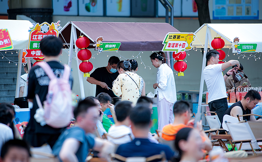 “近期,‘蘇超’聯賽持續火爆。我們以‘體育+美食+夜經濟’為核心,融合迷觀賽、地方美食、文化展示等內容,豐富文體旅聯動產品,希望以賽事帶動消費,讓市民在觀賽之余享受美食、互動的樂趣,提升看賽體驗感。”現場相關負責人表示,未來,園區還將結合更多體育IP,推出類似活動,持續激活夜間經濟活力。