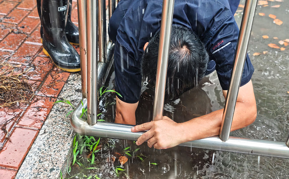 唯亭街道下穿涵洞較多,為避免積水導致安全隱患,街道緊急抽調綜合執法隊員、市政物業公司等組成應急隊伍,24小時蹲點監測守護,及時清理落葉、碎石等堵塞物,確保排水管網通暢。小區里,社區工作人員也緊抓風雨暫歇的間隙深入排查,聯動物業及相關部門及時排澇、疏通,合力保障居民安全與小區秩序。