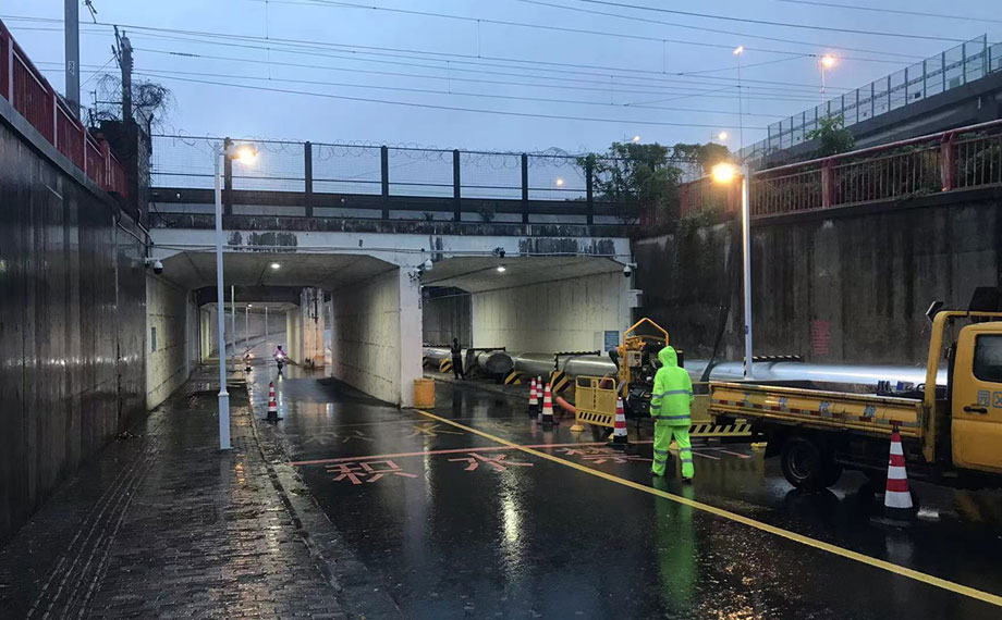 當晚,市政服務集團累計出動人員1340人次、車輛435車次,排查城市道橋、涵隧及附屬設施56處,及時清理積水點、疏通雨水篦子、處置倒伏樹木及斷枝,及時保障環湖、地庫等信號、防護措施落地落實,通過技防加人防,確保全區道橋涵隧、泵站閘口安全有序運行。
