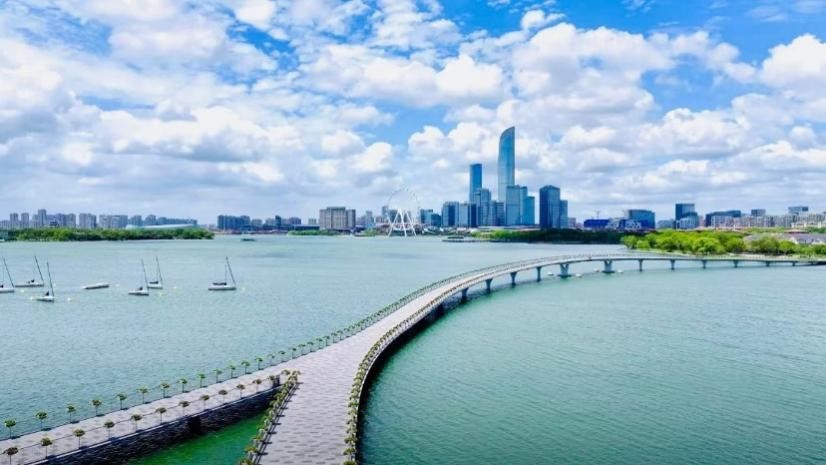 作為水鄉上崛起的現代化新城,園區河流縱橫、水網密集,擁有金雞湖、獨墅湖、陽澄湖等骨干河流,湖面與周邊錯落的生態景觀帶相映成趣,勾勒出了一幅“人水和諧”的生態畫卷。