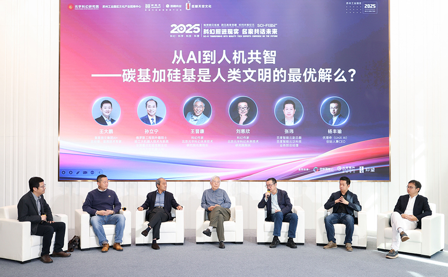 本次活動由蘇州寰宇未來文化科技有限公司、新建元控股集團旗下圓融發展公司主辦。與會人員圍繞“從AI到人機共智——碳基加硅基是人類文明的最優解么?”和“具身智能覺醒——會是我們的工具還是朋友?”兩大主題,就科技發展對人類社會的影響,以及科幻與現實的深度融合路徑進行了深入交流探討。