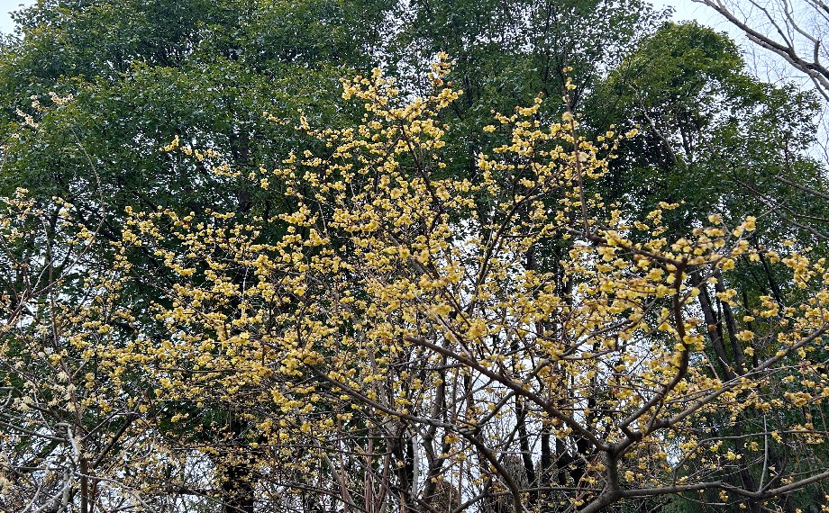 除了粉梅,園內(nèi)嫩黃的臘梅也競相綻放,星星點點棲于枝頭,寒風中盡顯生機。深吸一口,清冽幽香漫入鼻腔,驅(qū)散寒意,只留滿心舒暢,為家門口的景致添了幾分暖意。