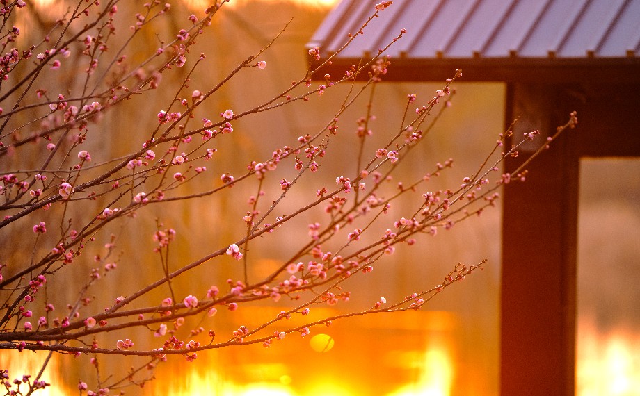 梅,素有“五福花”之雅稱,五片花瓣對應(yīng)“福祿壽喜財”,每一縷梅香里都裹挾著歲月的美好期許?;ò晔嬲?,嫩黃花蕊點綴其間,柔光拂過,光影流轉(zhuǎn),風動枝搖,滿樹爛漫,便是初春最溫柔的景致。