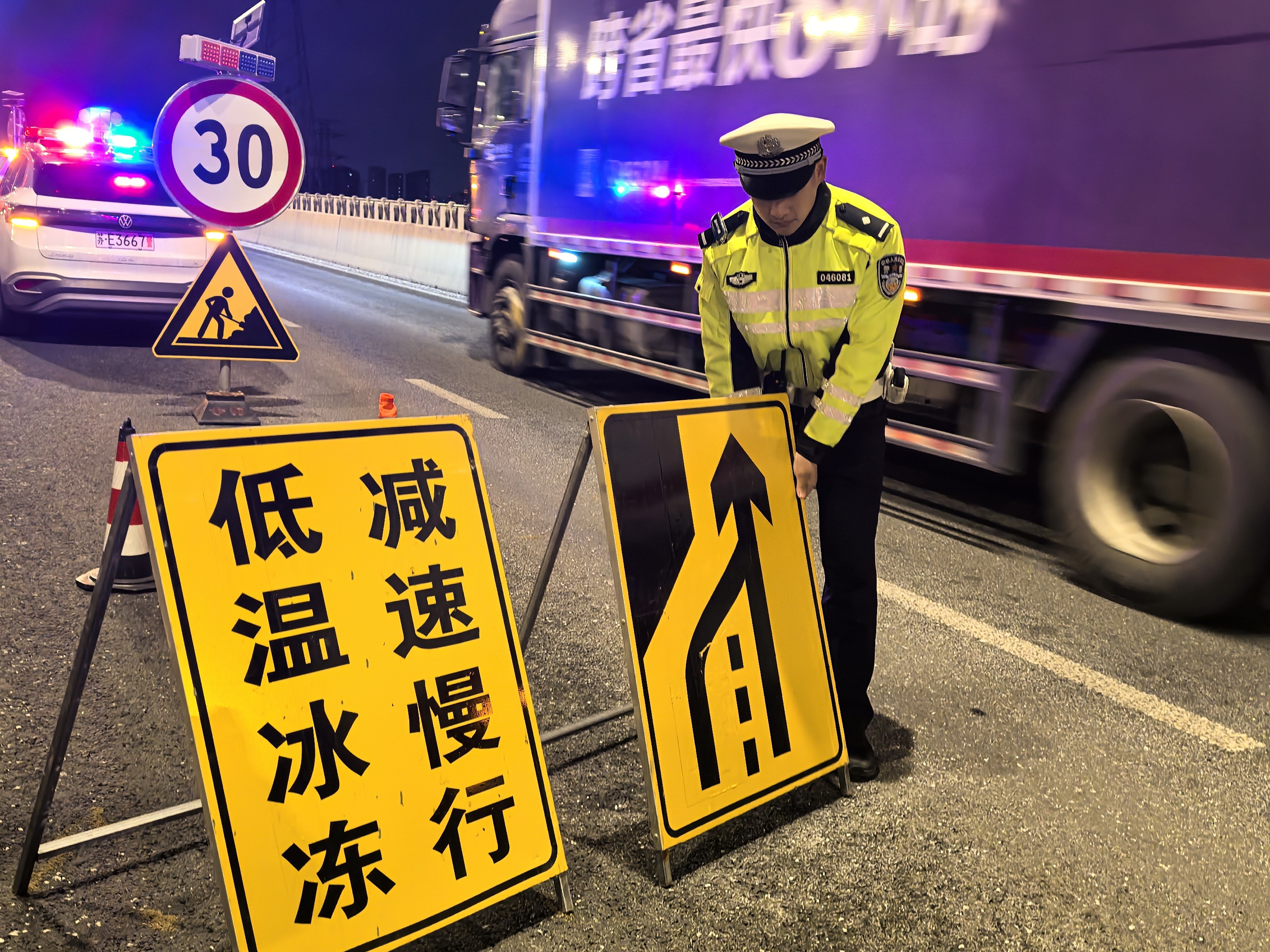 車流不息的高速口,紅藍警燈點亮了歸家路上的平安燈。